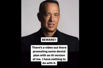 (Adnkronos) – Tom Hanks nello spot di un dentista? Falso, colpa dell’intelligenza artificiale. L’attore, dal proprio profilo Instagram, denuncia l’uso della sua immagine, ricreata con l’AI, in uno spot per un imprecisato ”piano dentale”. “Fate attenzione”, scrive la star di Hollywood. “C’è in giro un video che promuove un piano dentale con una versione di me realizzata con l’intelligenza artificiale. Non c’entro niente”, avverte Hanks.