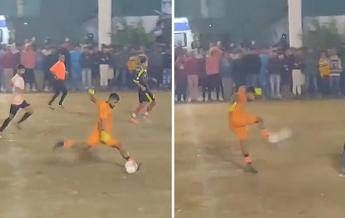 (Adnkronos) – Episodio da non credere in India, dove un portiere è diventato protagonista di uno dei video più virali del web. Nel corso di una partita di livello amatoriale, l’estremo difensore della squadra padrona di casa interrompe l’azione avversaria, avanza palla al piede incurante delle richieste di passaggio dei compagni e lascia partire un gran destro verso la porta. Il pallone sbatte sulla traversa, ma l’azione si conclude in un modo inaspettato.