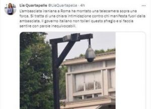 Ambasciata Iran a Roma, denuncia della dem Quartapelle: “Telecamera montata su forca”