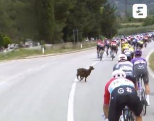 Giro d’Italia, una capra taglia la strada al gruppo – Video